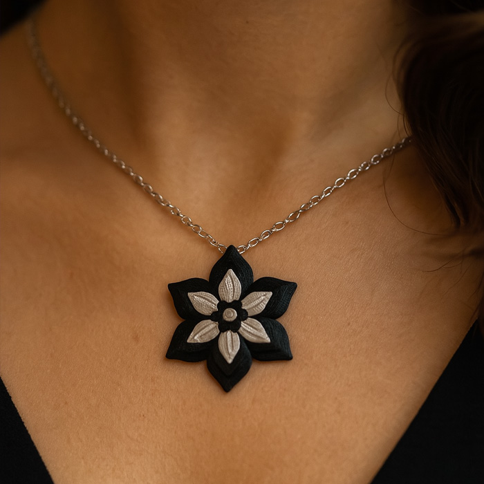 Zachwyć się kontrastem i elegancją zawieszki Black&White Flower – to nowoczesna biżuteria łącząca w sobie artystyczny design i trwałość druku 3D. Czarno-biały motyw kwiatowy symbolizuje harmonię, równowagę i wyrafinowany styl, który idealnie pasuje zarówno do klasycznych, jak i nowoczesnych stylizacji.